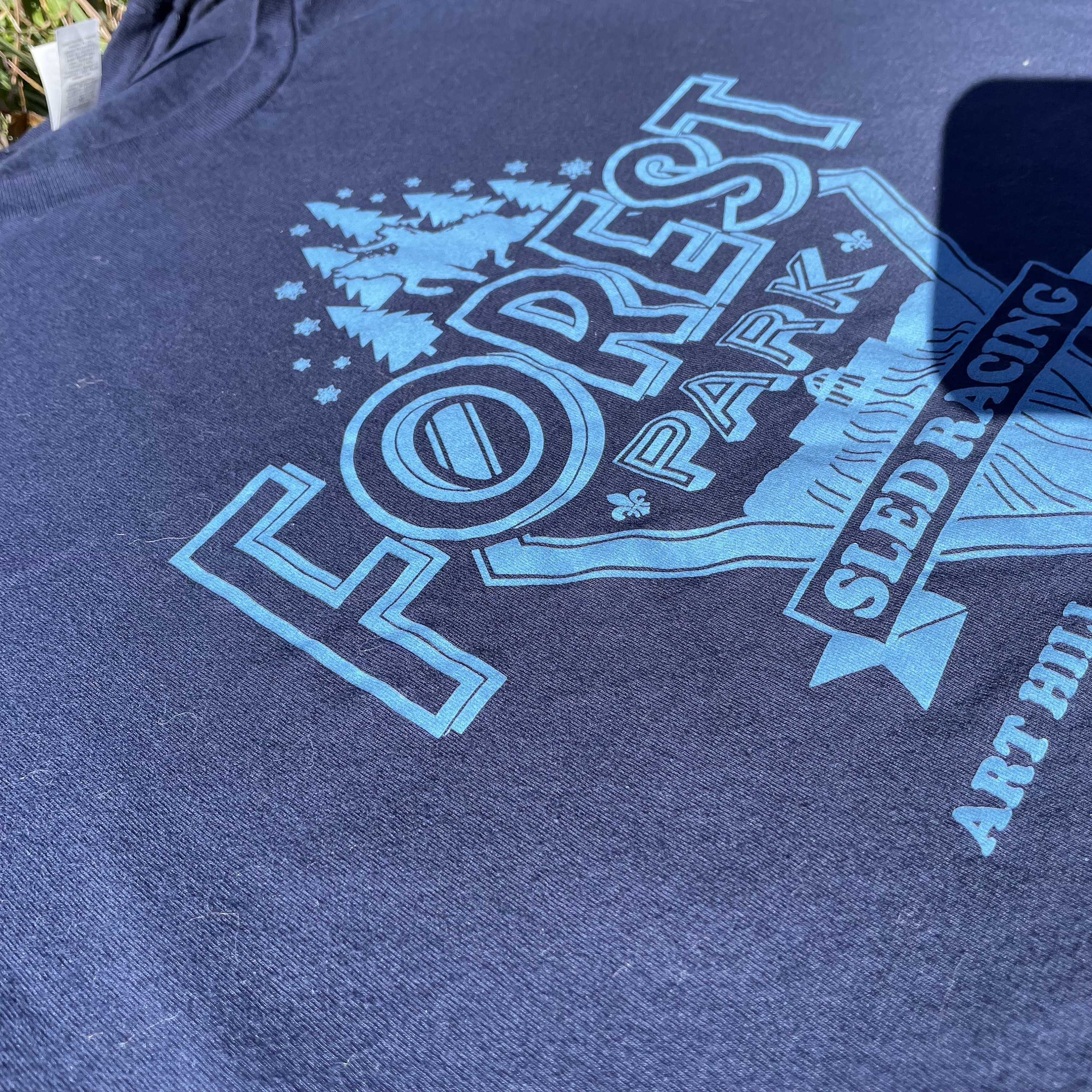 Our shirts are not just an article of clothing; they're a statement of your love for winter escapades and Forest Park traditions. The light blue ink design adds a touch of whimsy, while the variety of shirt styles and colors let you express your unique style.